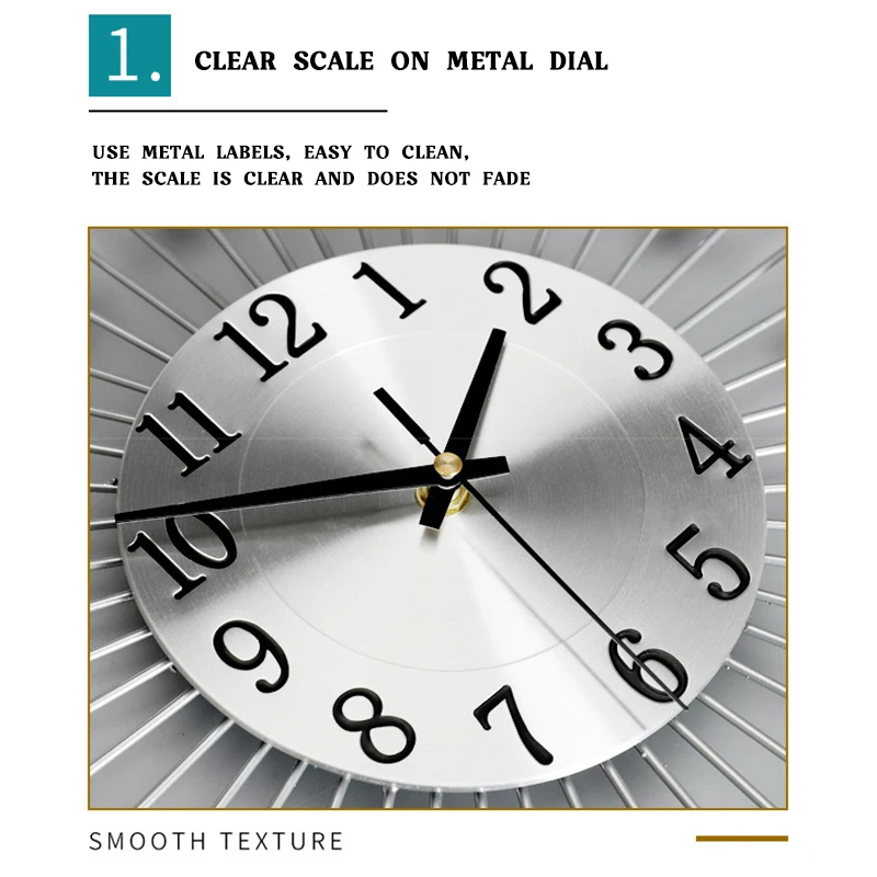 38/50Cm Metal Crystal Sun Wall Clock Sunburst Large Interior Wall Clock Home Rooms Office Art Decor Background Wall Ornament